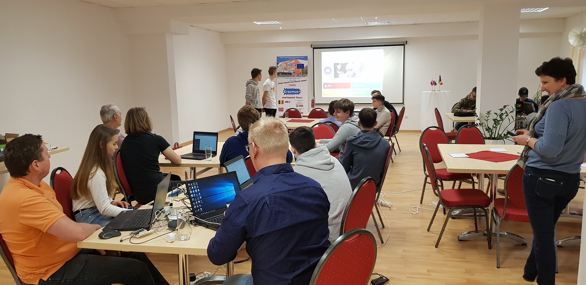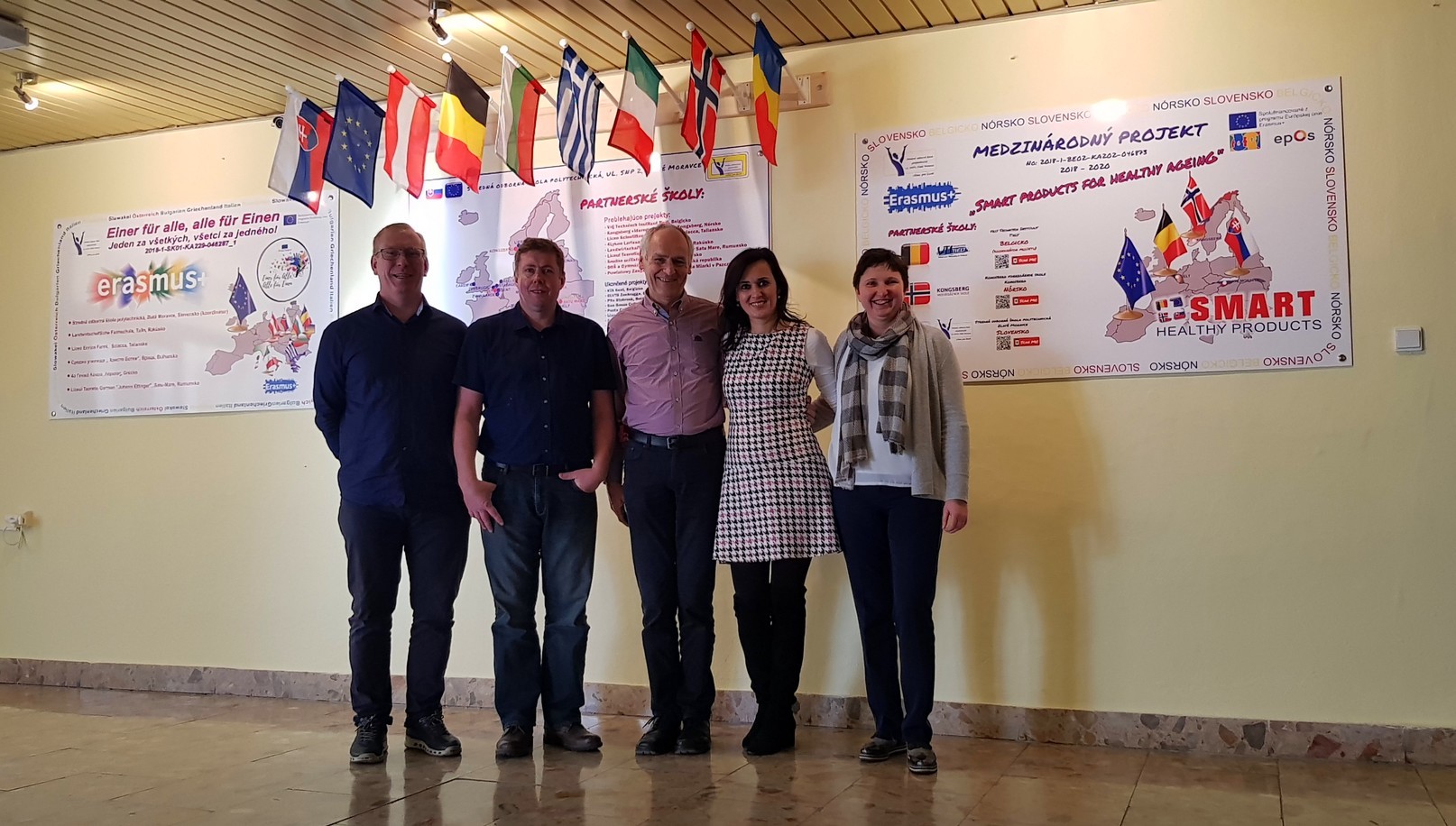 Prvé stretnutie sme realizovali s našimi partnermi zo školy VGS z nórskeho Kongsbergu a VTI z belgického Tieltu. Zúčastnilo sa ho spolu 14 študentov z Nórska a Belgicka so 4 svojimi pedagógmi, a za našu školu 6 študentov a dvaja učitelia odborných predmetov. V tomto projekte pod názvom „Smart devices for healthy ageing“ sa stalo našou ambíciou lepšie pochopiť, resp. s partnermi vyvinúť zariadenia, ktoré by mohli starším osamelým ľuďom, resp. ľuďom na dôchodku uľahčiť život tam, kde je to možné aj bez pomoci iných. Jedná sa hlavne o technológie centralizovaného zberu a analýzy dát z rôznych senzorov biologických veličín ako napr. tep, krvný tlak, detektor pádu, detektor pohybu, detektory nebezpečných látok, ale aj ovládanie zariadení hlasom. Potreba takýchto technológií priamo vyplýva z demografického vývoja v priestore celej Európy.