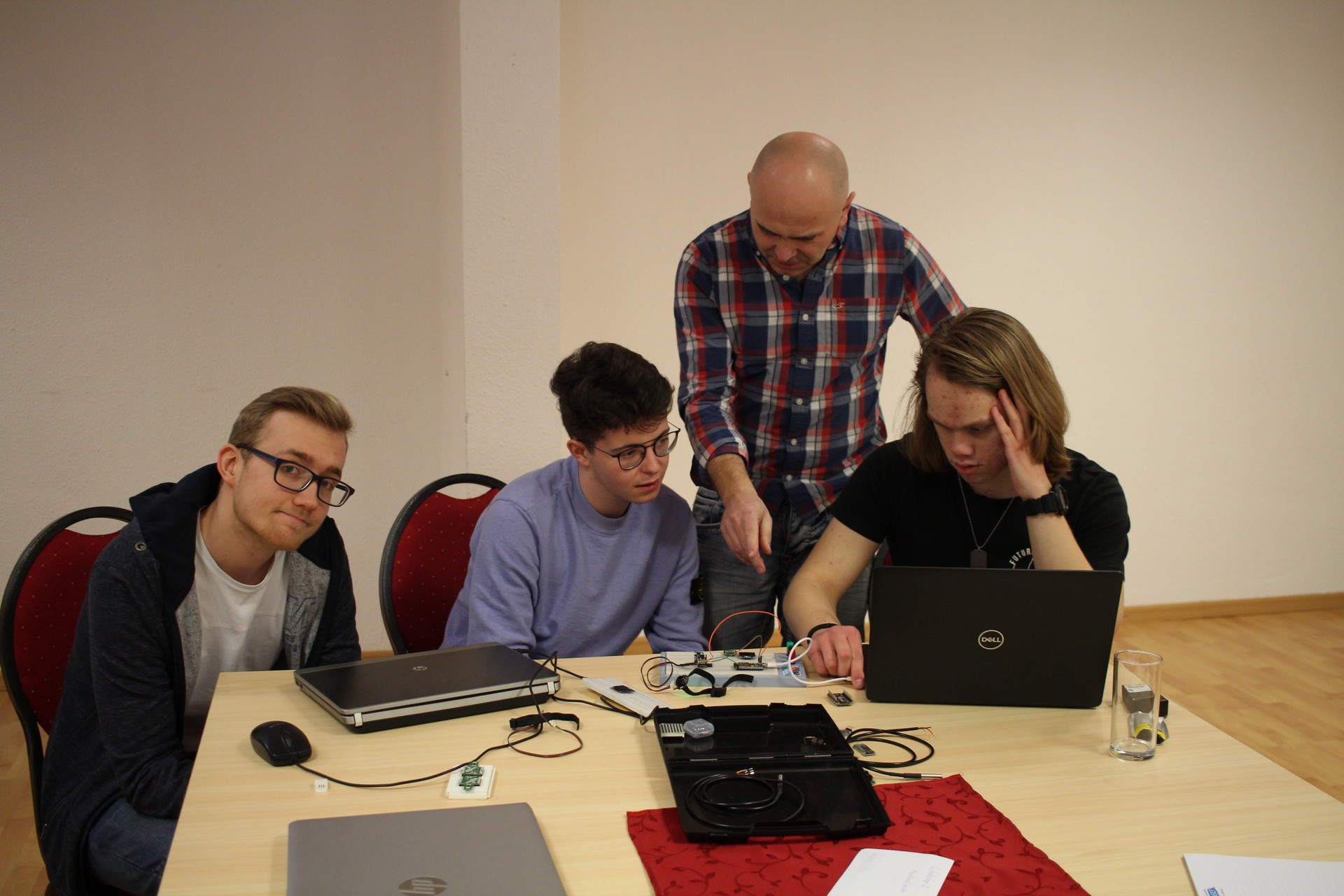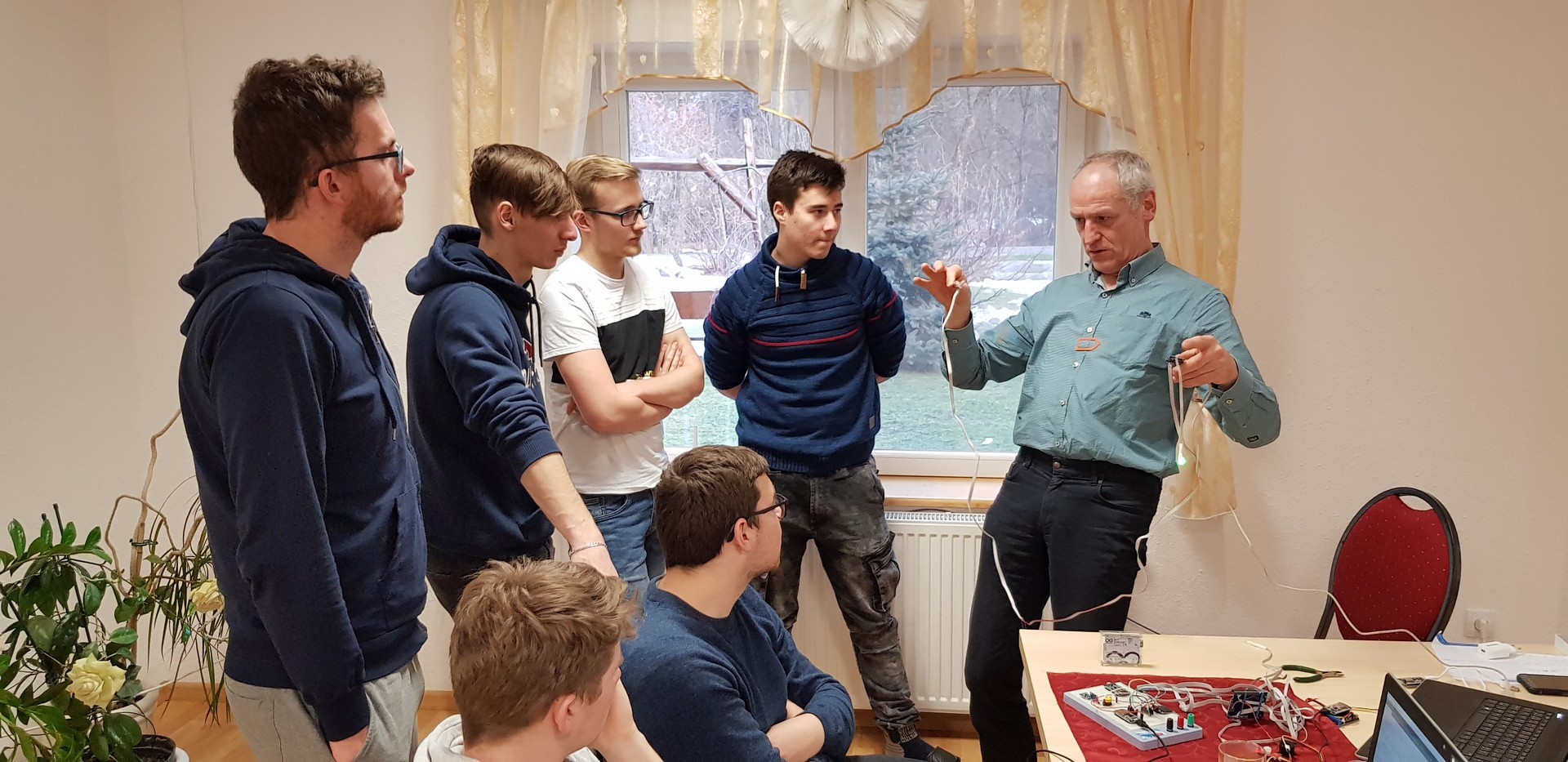 Počas piatich pracovných dní sa teda naši a zahraniční študenti a ich učitelia podelili o doterajšie skúsenosti a poznatky v tejto problematike, úspešne sme absolvovali spolu päť 4-hodinových „workshopov“ na témy: „Raspberry Pi ako server“, „Detektor tepu“, „Detektor pádu“,