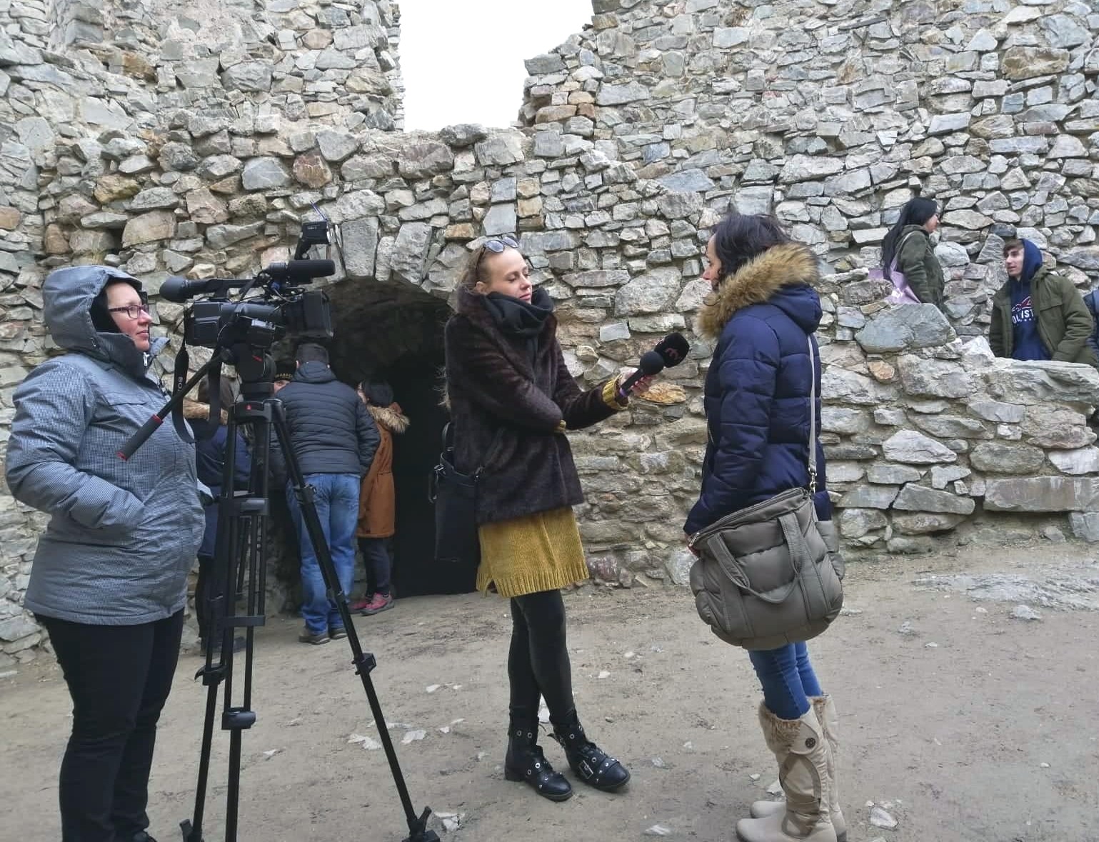 Zatiaľ čo študenti v skupinách usilovne pracovali na tvorbe kalendárov, zahraniční učitelia sa zúčastnili hospitácií na hodinách nemeckého jazyka a hodinách odborných predmetov. Po chutnom spoločnom obede v jedálni našej školy sme sa ponáhľali smerom k hradu Hrušov, kde nás už čakala reportérka Slovenskej televízie, ktorá o spolupráci SOŠ polytechnickej a OZ Leustach pri obnove Hrušova natočila reportáž.