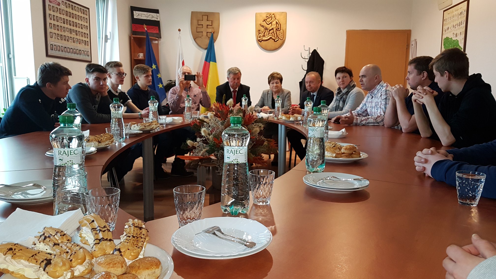 Po obede v školskej jedálni sme sa ponáhľali do obradnej siene MSKS, kde opäť všetkých prijal primátor mesta Zlaté Moravce pán Dušan Husár.