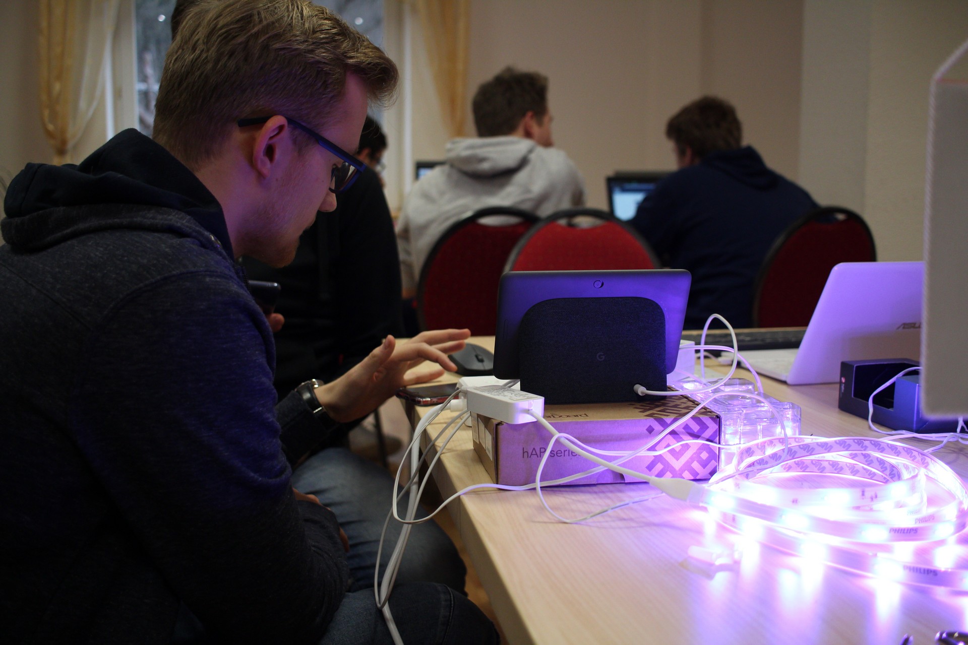 „Google HOME HUB a jeho využitie v domácnosti“, „Ovládanie osvetlenia a iných zariadení domácnosti hlasom pomocou GOOGLE HOME a PHILIPS HUE“. Technológie, s ktorými sme pracovali predstavujú absolútnu technologickú špičku v danej problematike. Sme preto hrdí, že naši študenti mohli porovnať a zároveň nadobúdať nové vedomosti a skúsenosti so svojimi rovesníkmi z našich partnerských krajín.