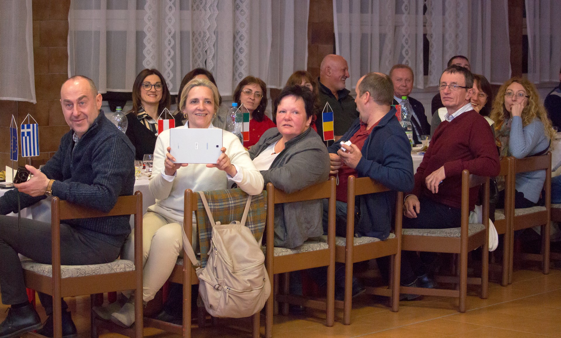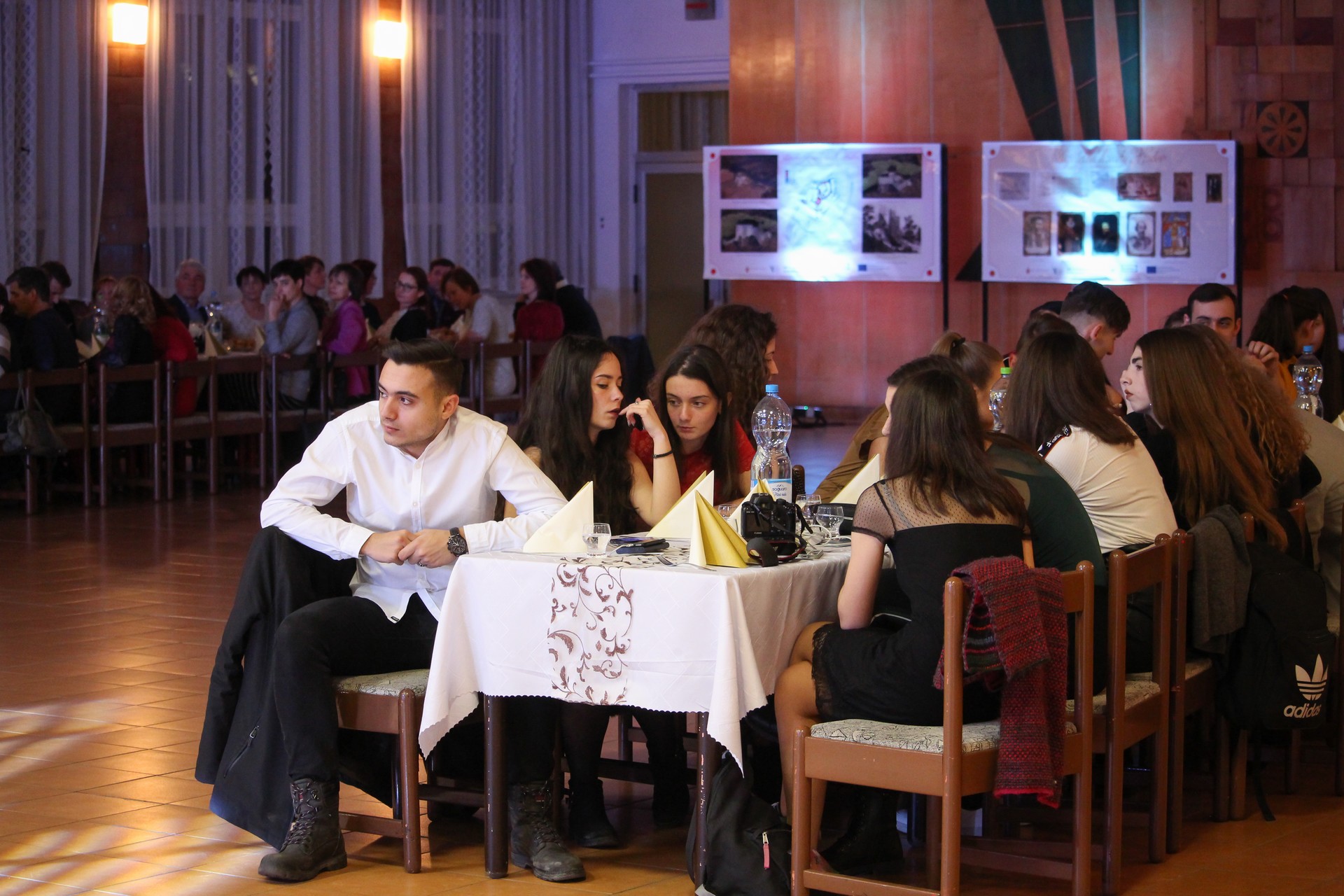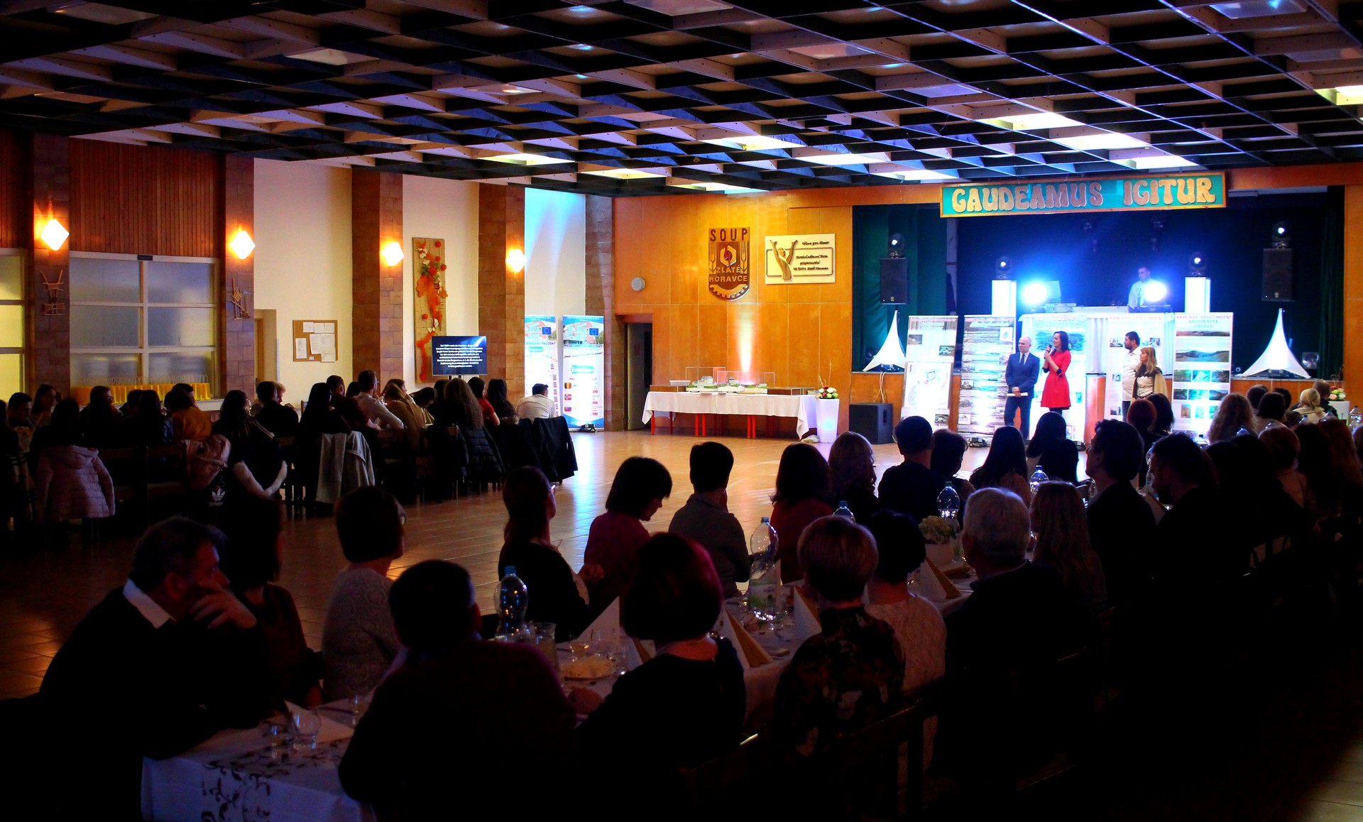 Záver druhého dňa bol venovaný večierku spojeného so slávnostnou večerou, na ktorom sme pozvaným hosťom prezentovali spoluprácu s OZ LEUSTACH, predstavili sadu roll-upov a bannerov, vytvorených v rámci projektu ako pomoc združeniu pri propagácii činnosti a hradu samotného.