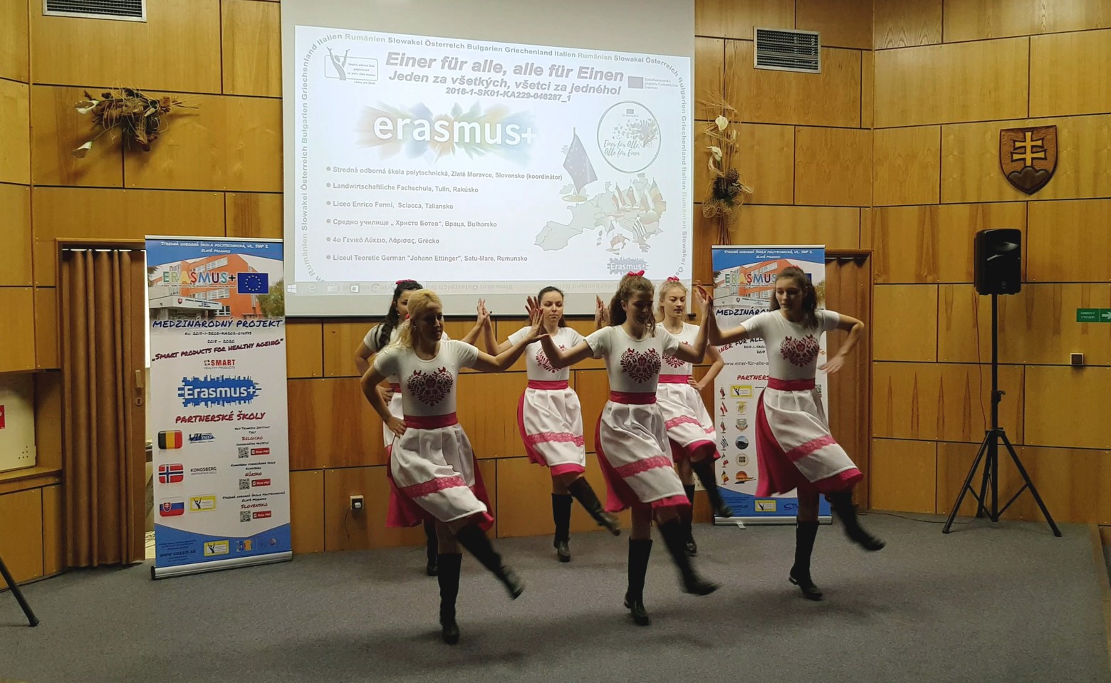 nasledoval kultúrny program pripravený našimi študentami, predstavenie partnerov a prehliadka priestorov školy.