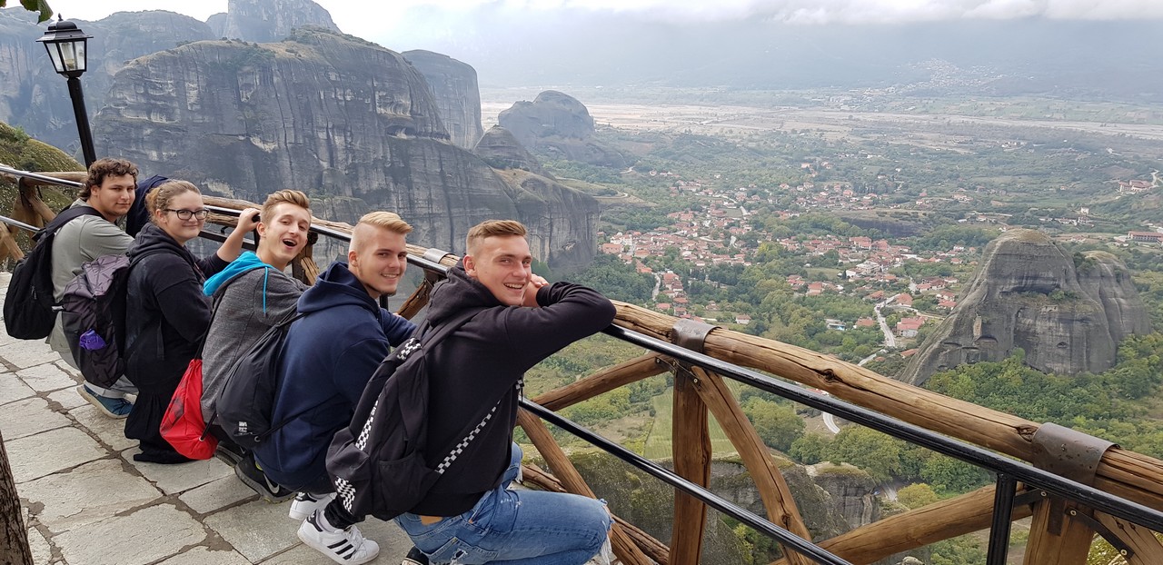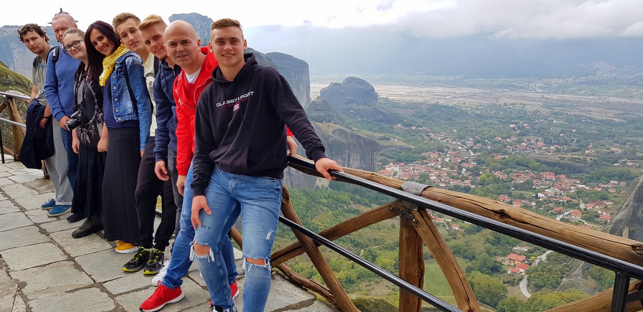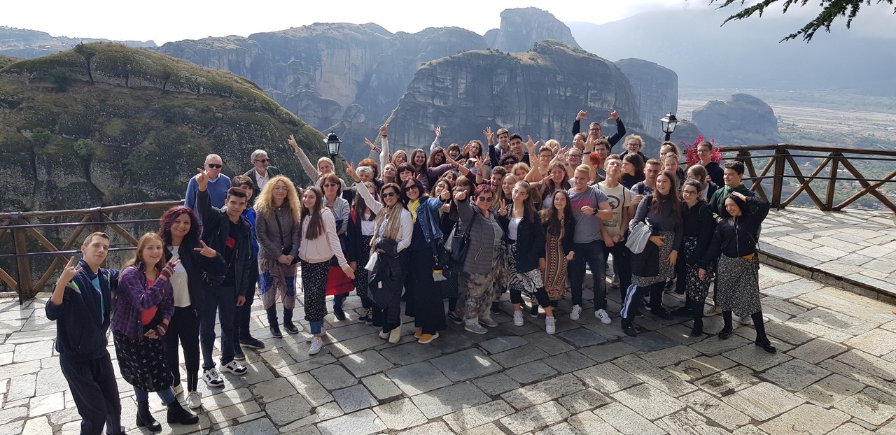 Tretí deň pobytu bol venovaný návšteve svetoznámeho a vskutku jedinečného miesta, ktorým je mestečko Kalambaka. Práve nad ňou sa rozprestiera rozprávkový svet kláštorov postavených na vrcholkoch skál – Meteora.Tá je podobne ako napríklad náš Vlkolinec zapísaná do zoznamu svetového kultúrneho dedičstva UNESCO. Neopakovateľná atmosféra interiérov a exteriérov kláštora Sv. Štefana a kláštora „Veľký Metheoron“, ktoré sme navštívili a následné dychberúce výhľady zo skalných výšav na okolitú krajinu budú pre všetkých z nás zážitkom na celý život. Program tretieho dňa vyvrcholil večer, keď sa konal večierok, na ktorom každá krajina predstavila svoje folklórne tance a konala sa aj výstava krojov. Naši študenti sa samozrejme prezentovali tiež. 🙂
