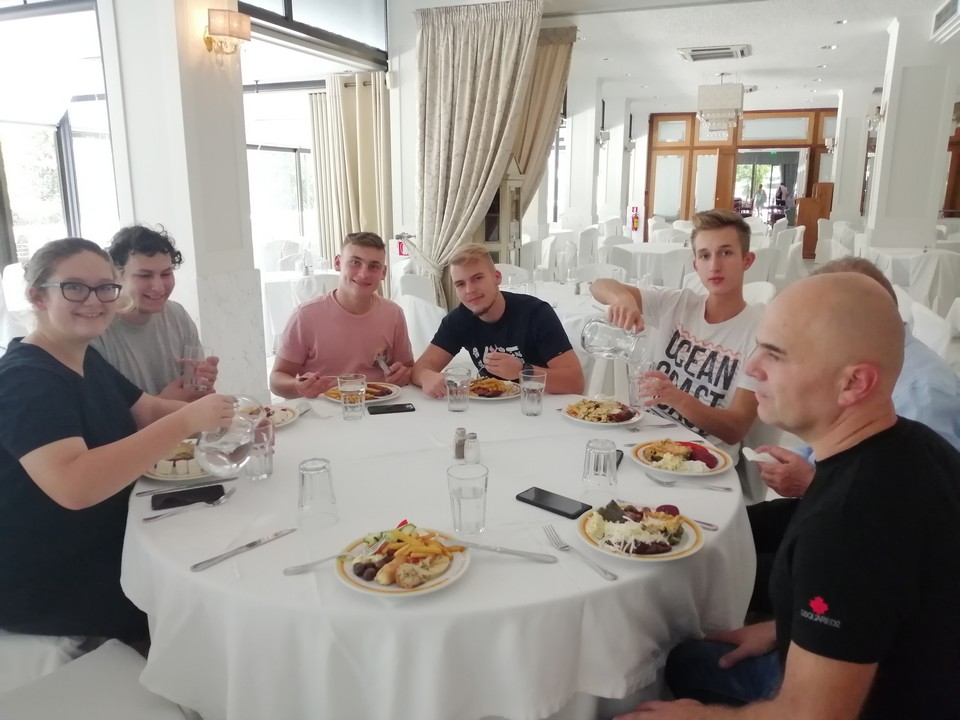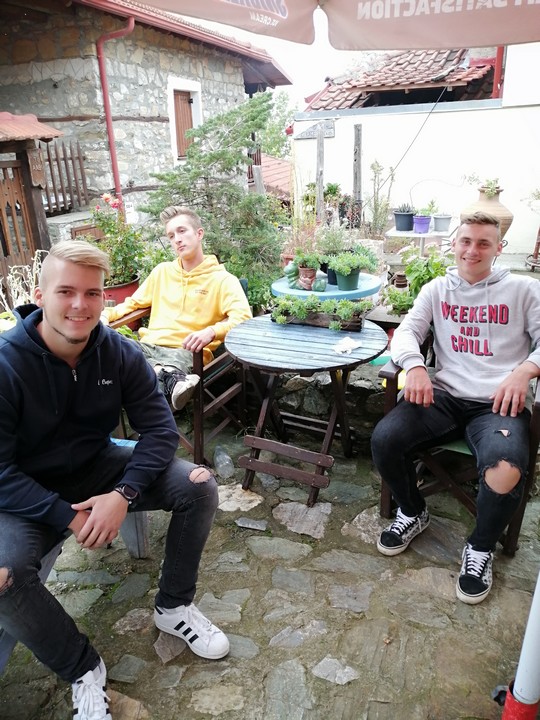Štvrtok 10. októbra sme sa všetci presunuli do prímorského mestečka Platamonas. Nad ním sme najskôr navštívili Palaios Panteleimonas, starodávnu dedinku s čarovnou atmosférou vysoko v horách na úpätí bájnej hory Olymp. Na nej žili podľa gréckej mytológie veľkí bohovia. Žil tu najvyšší boh Zeus, jeho manželka Héra, bohyňa lásky Afrodita a Poseidon, boh mora. V dedinke sme obdivovali jedinečnú, doslova čarovnú atmosféru úzkych malebných uličiek, ktorými je prepletená. V poobedňajších hodinách sme sa presunuli do centra Platamonasu, kde sme sa všetci ubytovali a naši študenti si mohli vychutnať aspoň na pár hodín aj atmosféru prímorského letoviska a ešte stále pomerne teplú vodu Egejského mora. Večer sme spolu všetci večerali v typickej rybárskej taverne v prístave a na pláži potom všetci vypustili lampióny šťastia. Takto sme ukončili predposledný deň programu mobility.